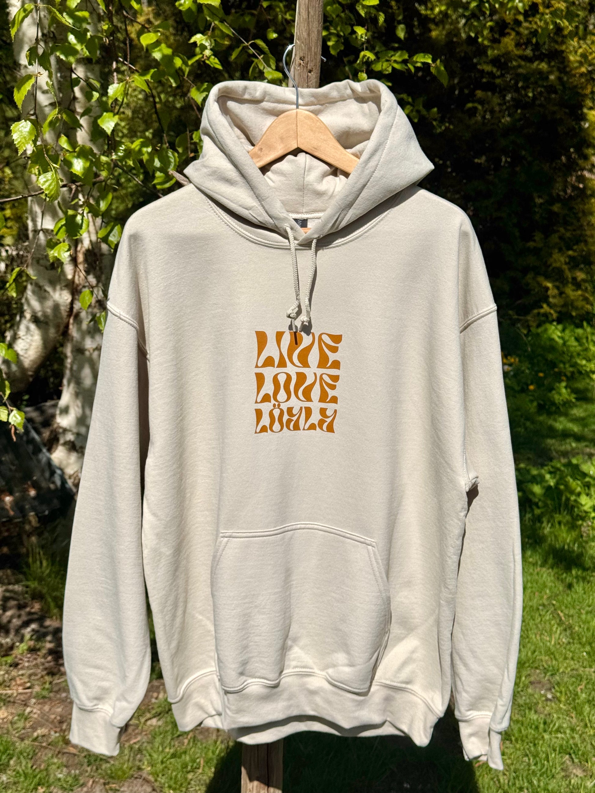 Bastun beige huppari upealla pronssinruskealla logolla rinnassa ja selässä. Tällä paidalla keräät kateellisia katseita ja muistutat itsesi lisäksi muita näkijöitä elämää ohjaavalla mantralla.